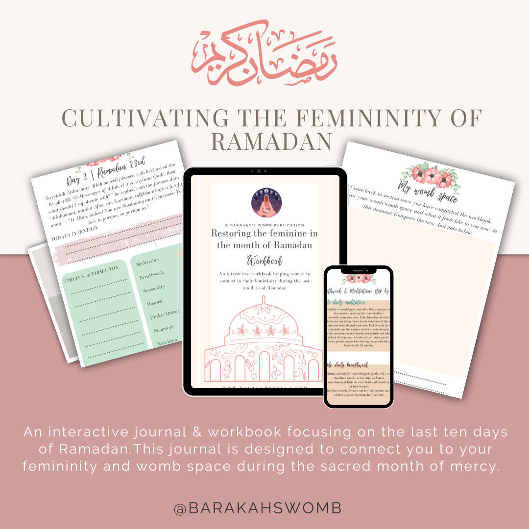 Ramadan is the month when the prophet Muhammad ﷺ received revelation. This came after spending years of His life meditating in the cave of Hera. Ramadan is often referred to as the 'Month of Mercy'The root word of womb in Arabic 'رحم' means mercy which in itself is an indicator of the feminine attributes of this holy month. Ramadan is a month full of feminine energy. Masculine energy is strong, giving, active, driven, and stable. Femininity is soft, subtle, receiving, and gentle. A lot of the energy that we work with daily is masculine (reaching goals, getting things done quickly, giving attention and energy). As women, we work from a place of ease and love when we are connected to our femininity and can have a stronger connection to our intuition, cycle, sensuality, and relationships with others when we do so. The attributes of Ramadan are the opposite of masculine. By fasting from food as well as intimacy, our ego is, in a way, forced to retreat and move at a much more feminine pace. For women, this is a priceless gift as life doesn't give us many opportunities to live in our feminine. There are activities and rituals that can be done every day to help strengthen our connections to our femininity which we will dive into soon. To know God we must first know ourselves and Ramadan is a beautiful and blessed opportunity to do just that.